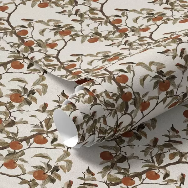 Wallpapers Birds and oranges on branches, vintage botany No. a00208