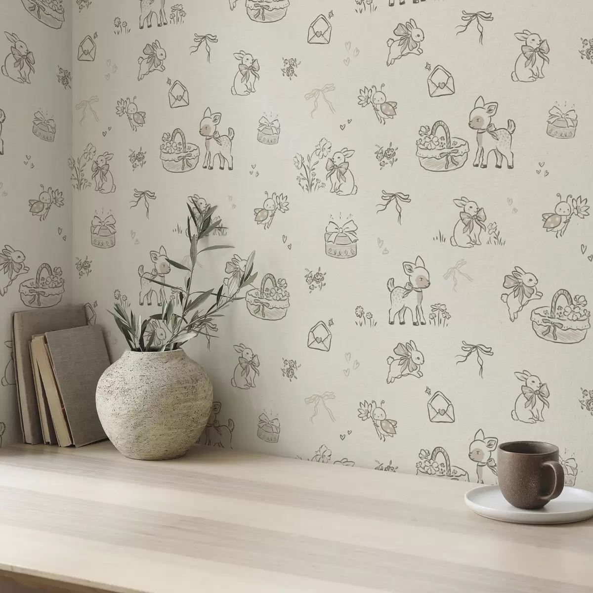 Wallpapers Cute forest scene with deer, rabbits and bees No. a00215