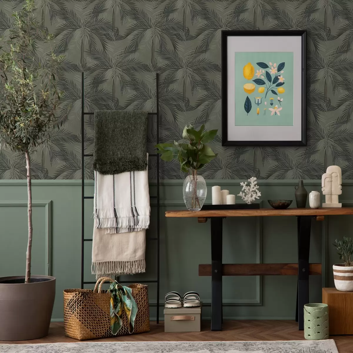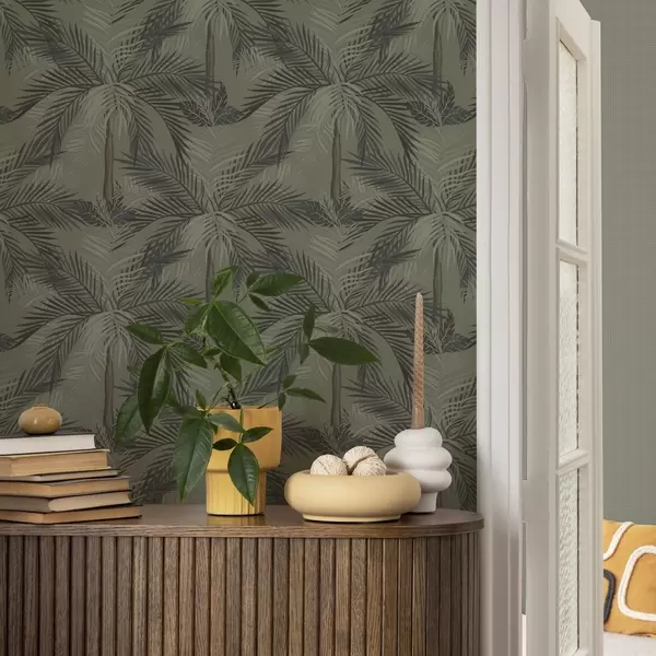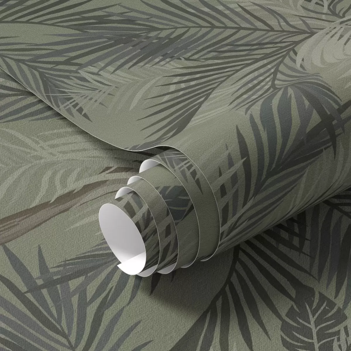 Wallpapers Palm leaves on olive background, jungle, tropics No. a00217