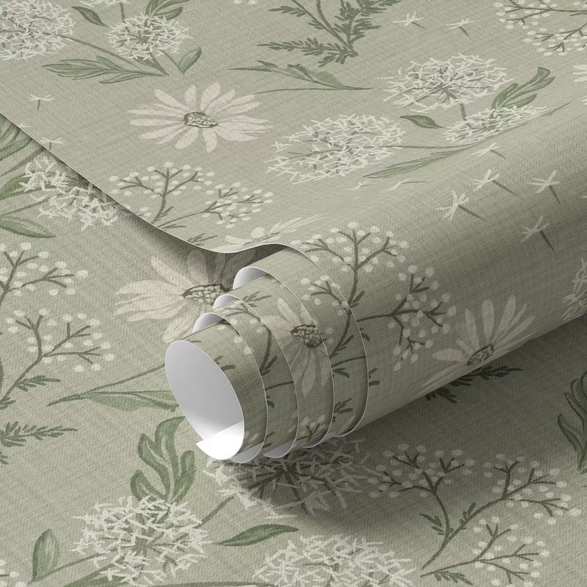 Wallpapers Dandelions and daisies, botanical pattern on gray-green background No. a00224