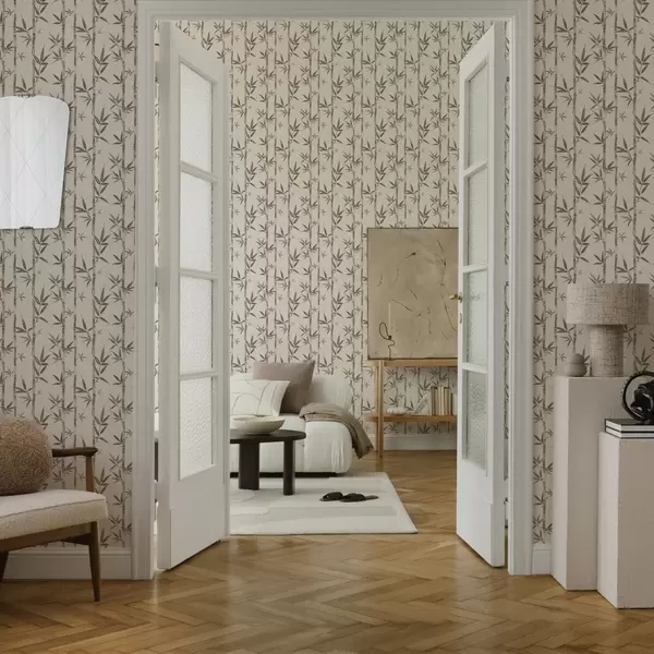 Wallpapers Beige bamboo pattern with Japanese-style leaves No. a00236