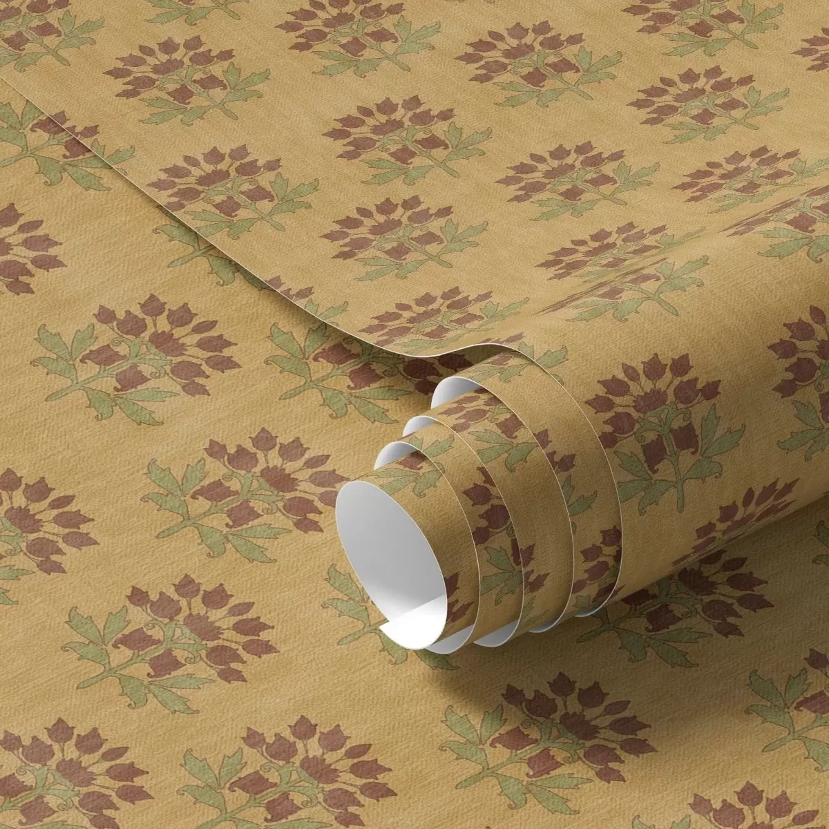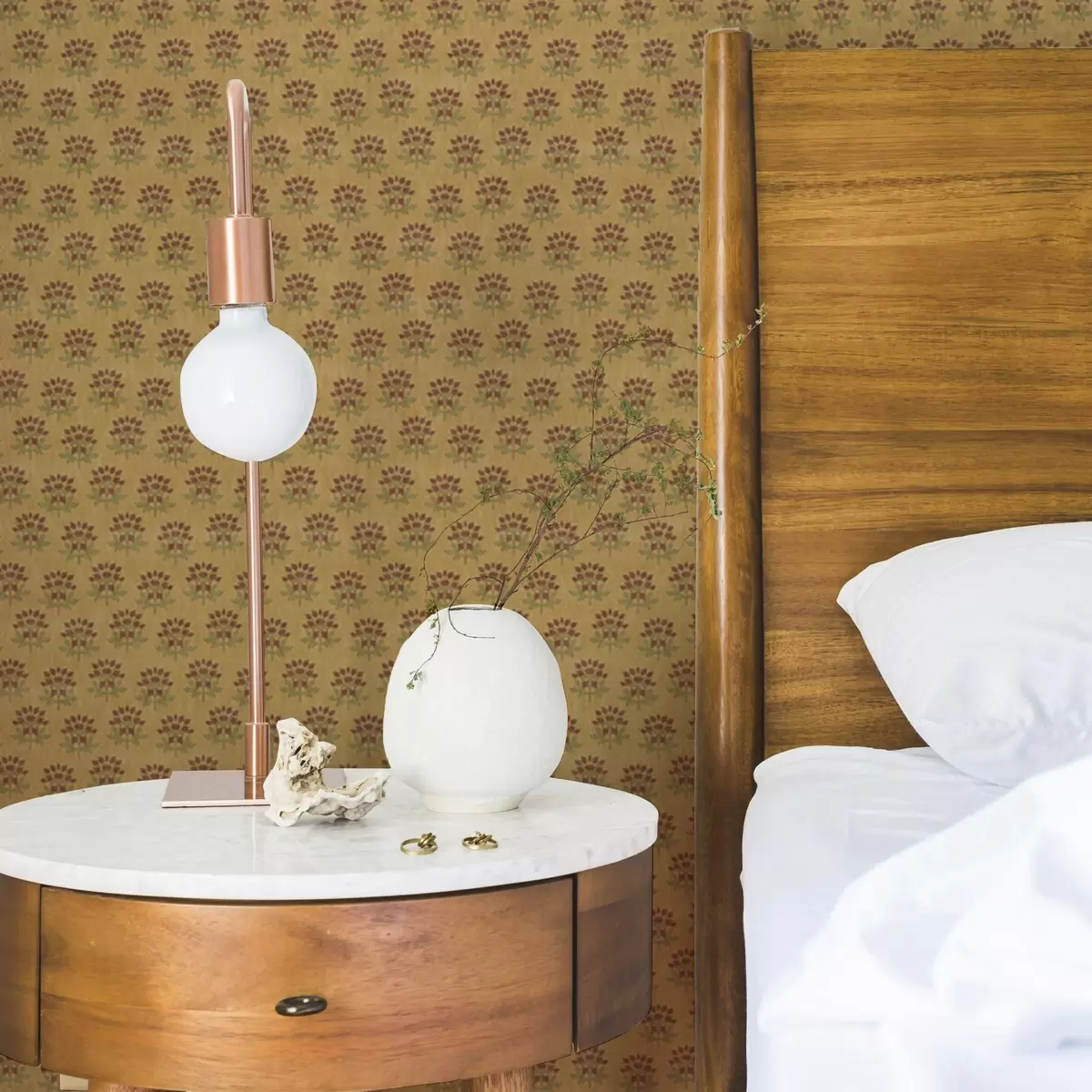 Wallpapers Retro floral pattern with lotuses on yellow background No. a00238