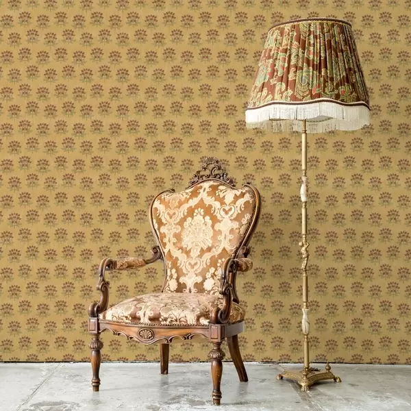 Wallpapers Retro floral pattern with lotuses on yellow background No. a00238