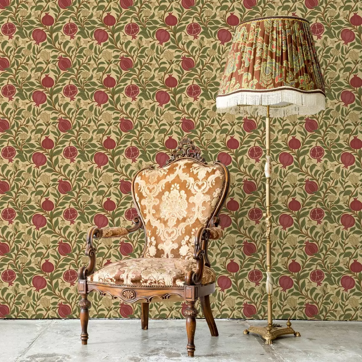 Wallpaper Pomegranates and flowers in the style of William Morris a00240