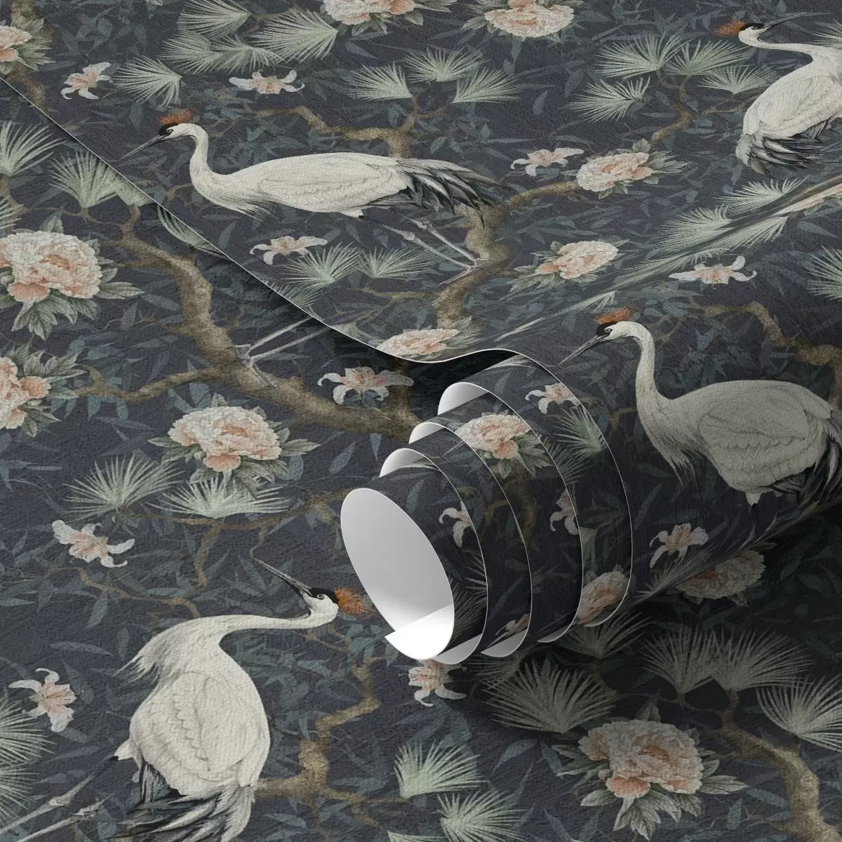 Wallpapers Cranes among pines and peonies on a dark background No. a00241