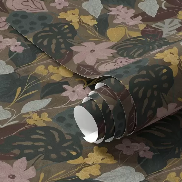 Wallpapers Dark tropical leaves and flowers in a dense painting dense painting No. a00244