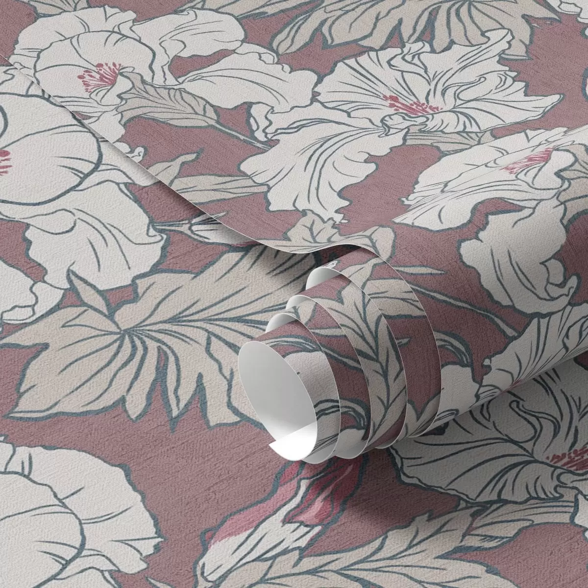 Wallpapers White hibiscus on pink background with red buds No. a00272
