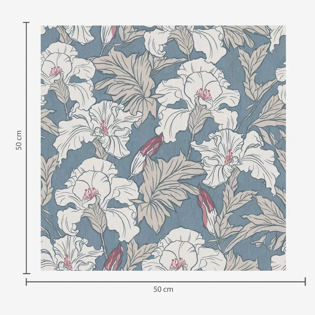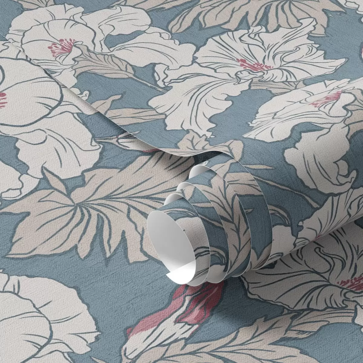 Wallpapers White hibiscus on blue background with contour pattern No. a00272v1