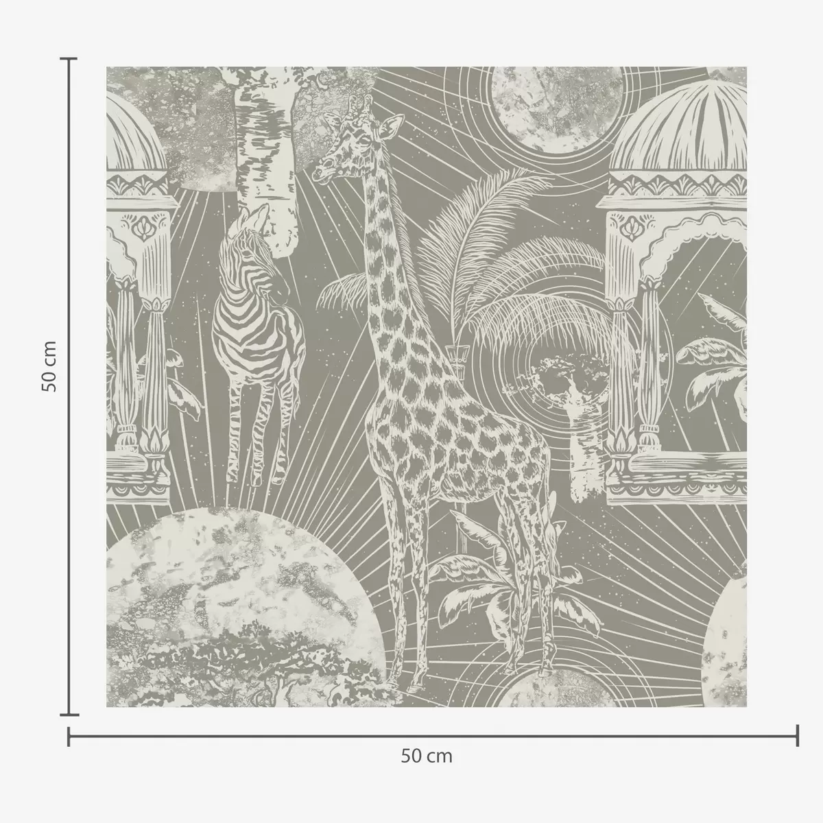 Wallpapers Giraffe and zebra on the background of architecture and tropical trees No. a00276