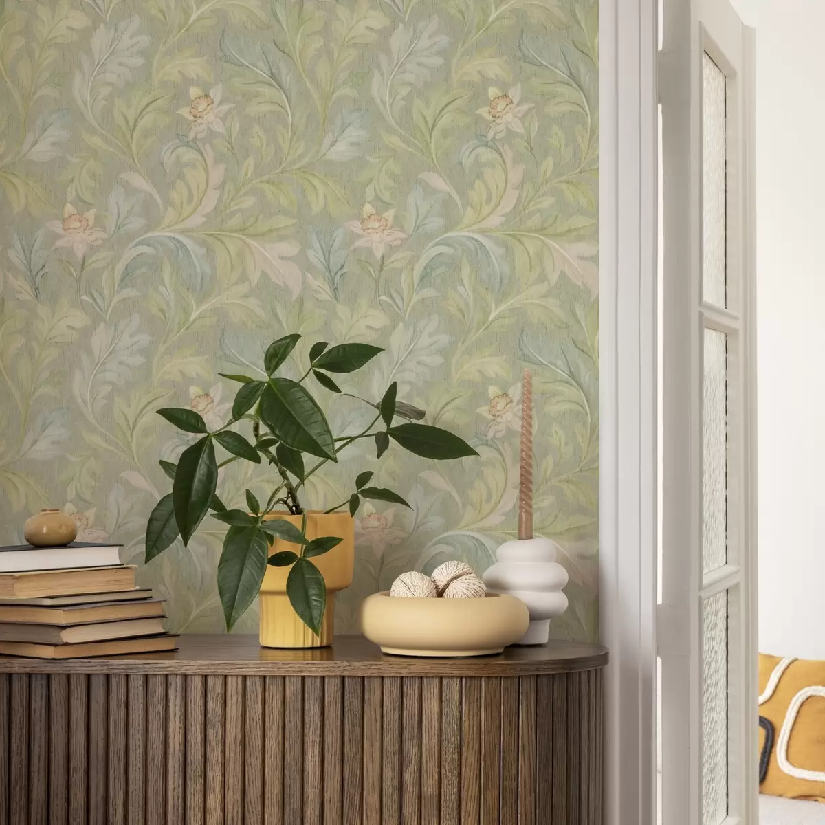 Wipe gently with a soft sponge. Varnished wallpapers can be cleaned with water.