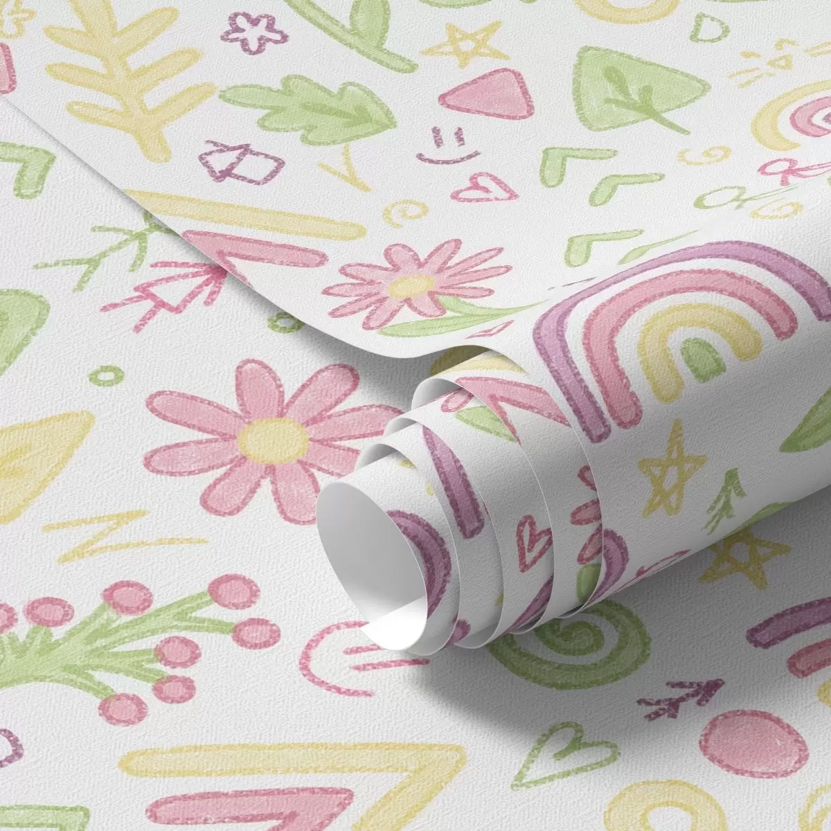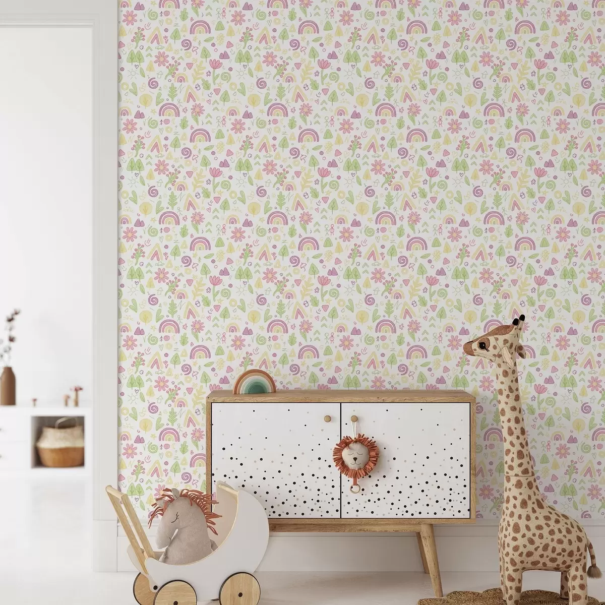 Wallpapers Children’s drawing with rainbows, flowers, and trees No. a00296