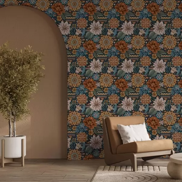 Wallpapers Bright decorative flowers with geometric elements No. a00305