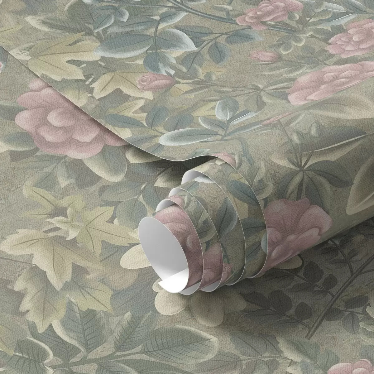 Wallpapers Pink flowers and leaves on a pastel green background No. a00306
