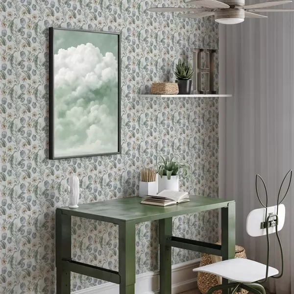Wallpaper Botanical pattern with artichokes and tropical leaves a00340