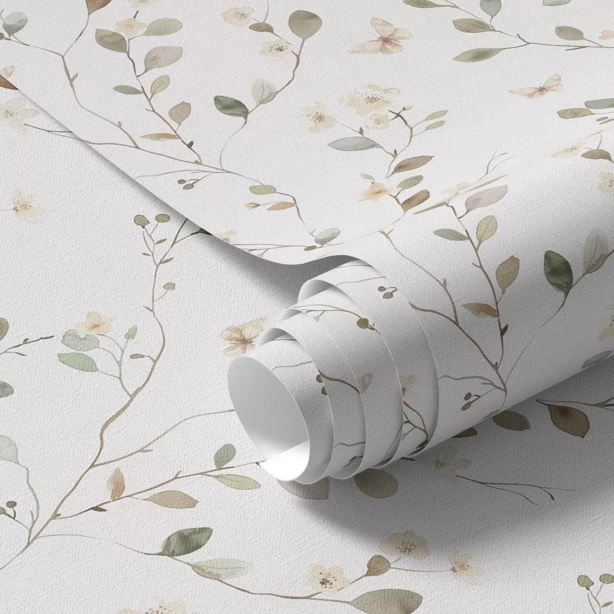 Wallpapers Thin branches with flowers and butterflies on white background No. a00342