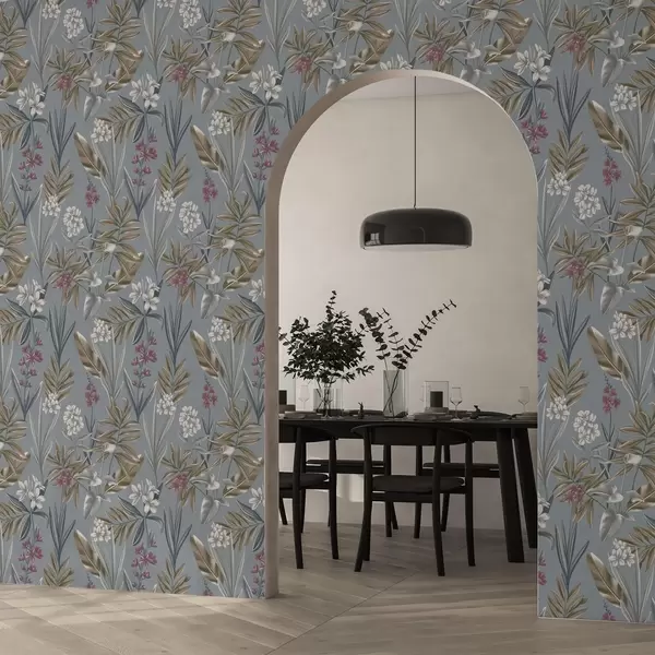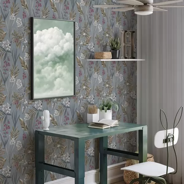 Wallpapers Floral branches on a blue-gray background No. a00350