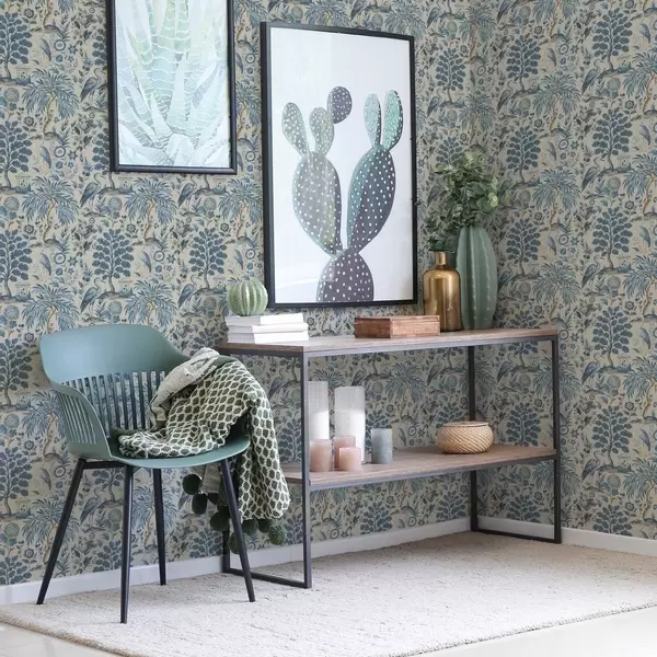 Wallpapers Toile de Jouy style with blue birds and tropical trees No. a00382