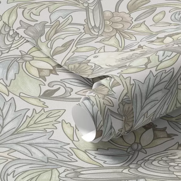 Wallpapers Art Nouveau birds and pastel stylized flowers No. a00385