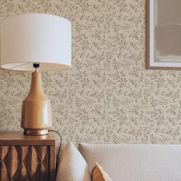 Wallpaper Delicate pastel flower branches on beige background a00390