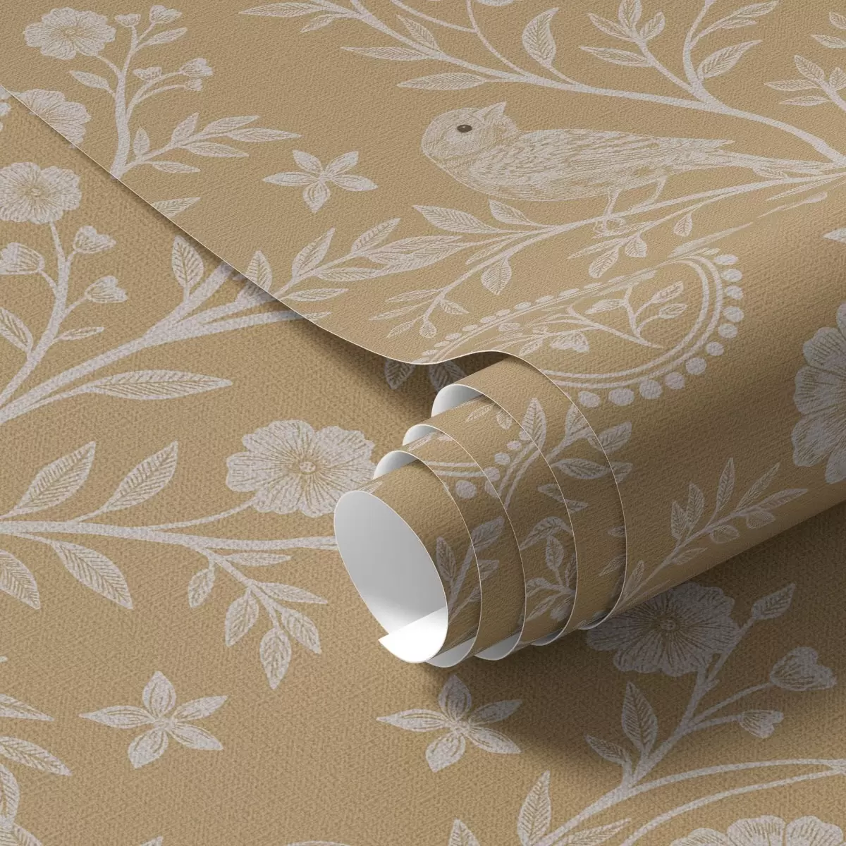 Wallpapers Delicate sketch of a white bird and flower white bird and flower on ocher background No. a00393