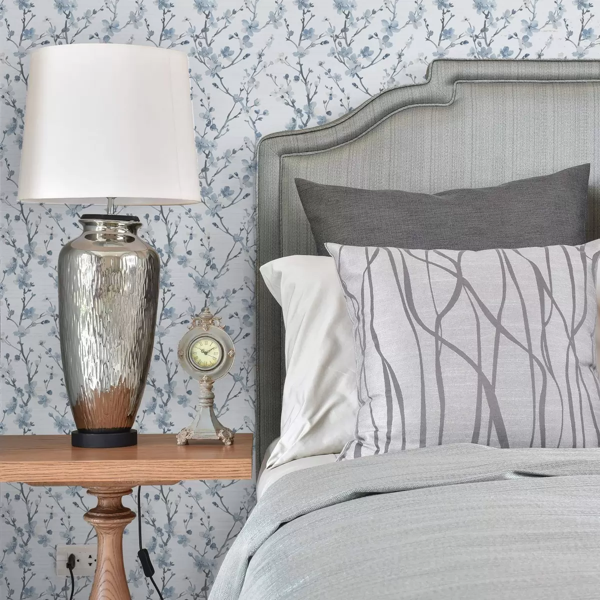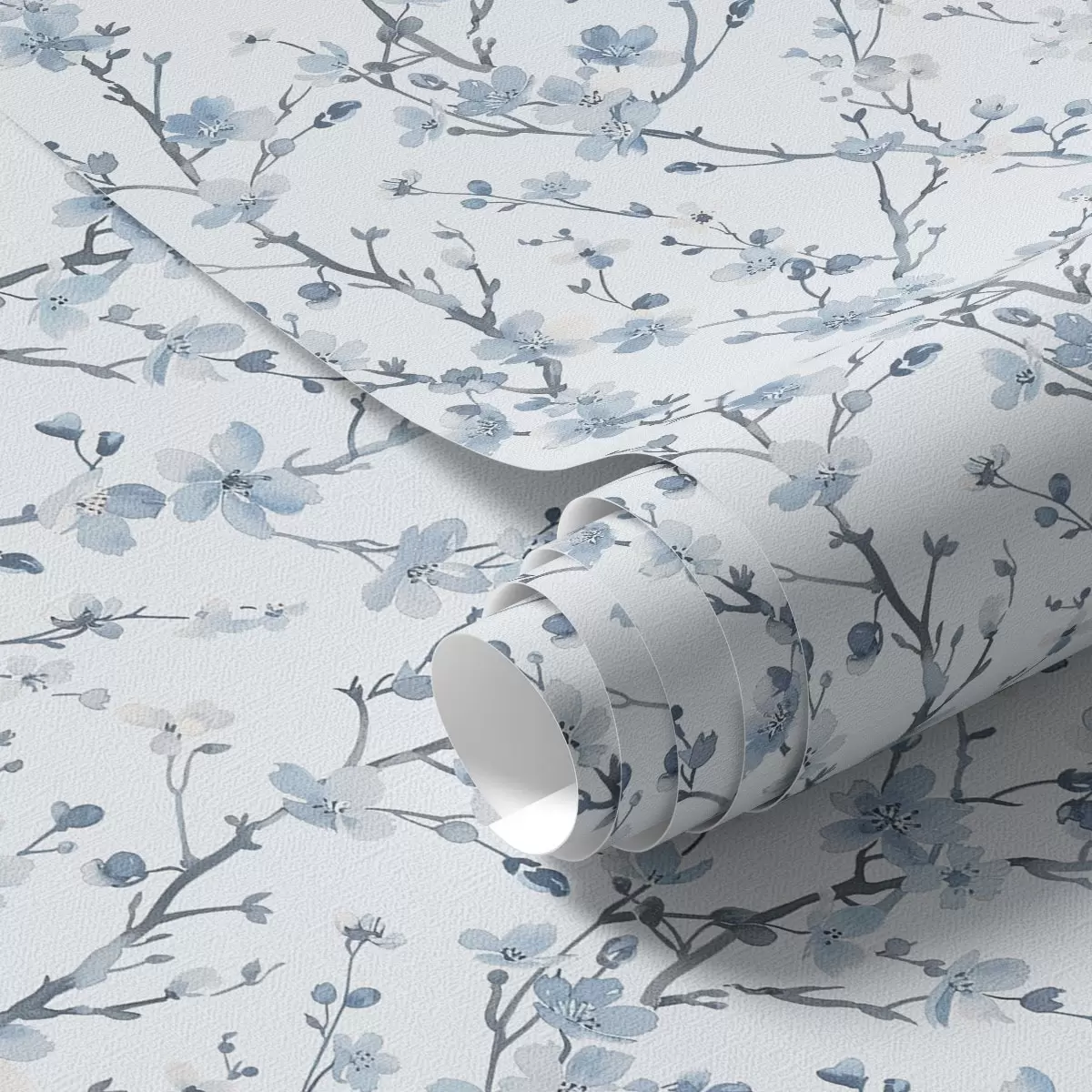 Wallpaper Blue cherry blossoms on a white background with soft contrast a00399