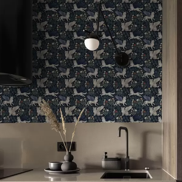Wallpapers Fantasy cats with wings among flowers No. a00408