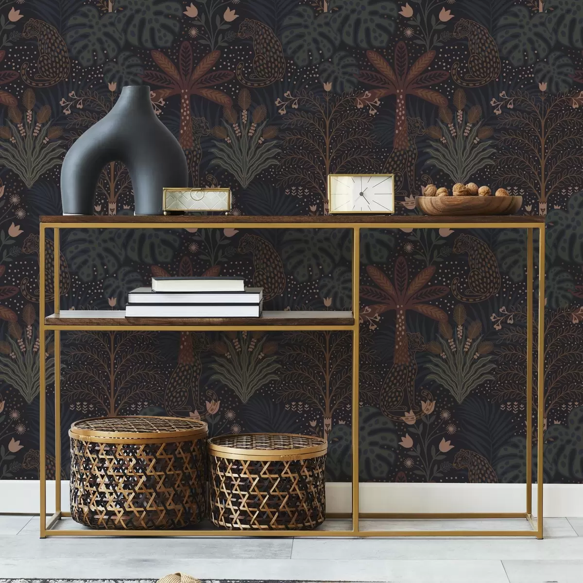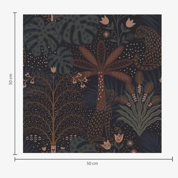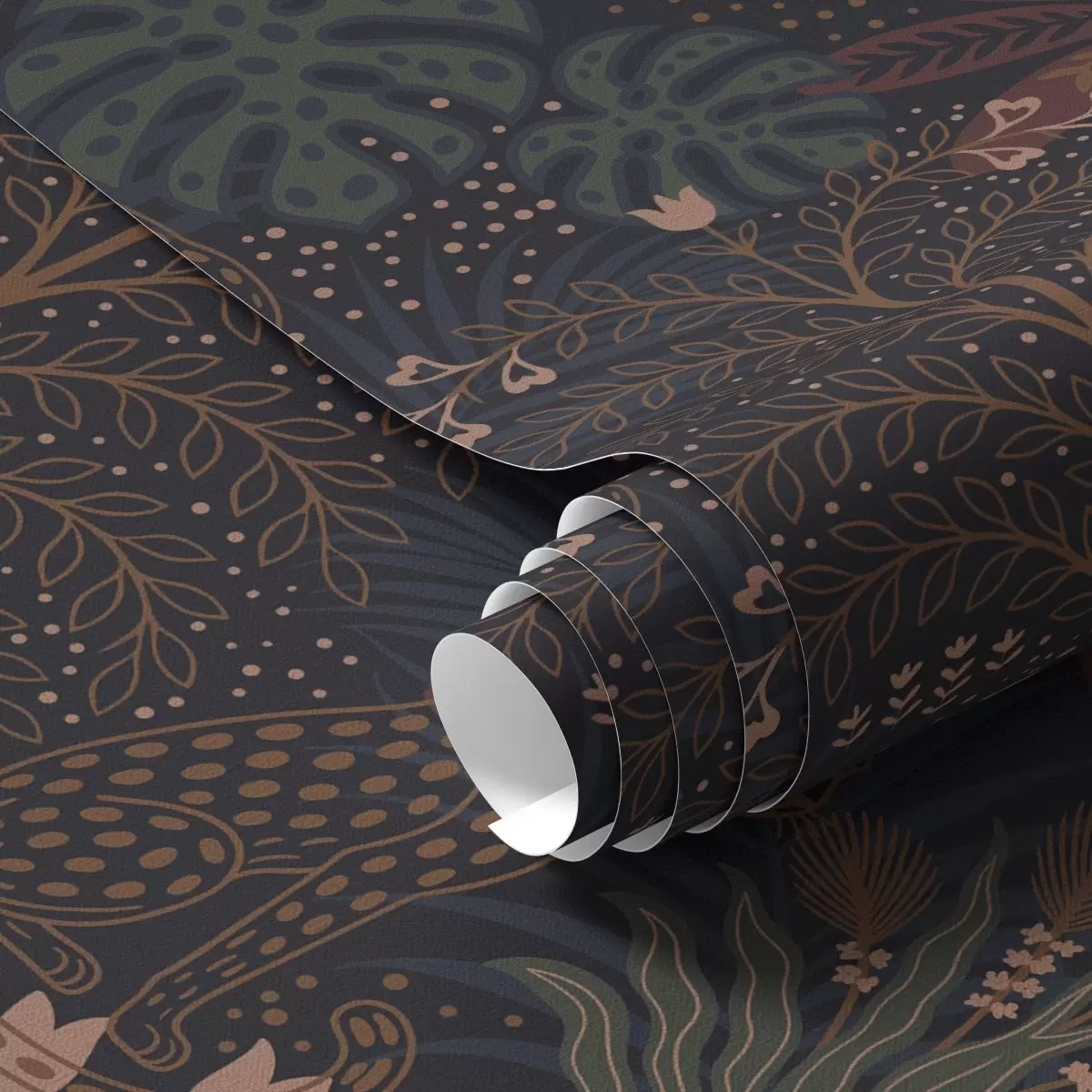 Wallpaper Dark jungle with leopards palm trees and flowers a00424