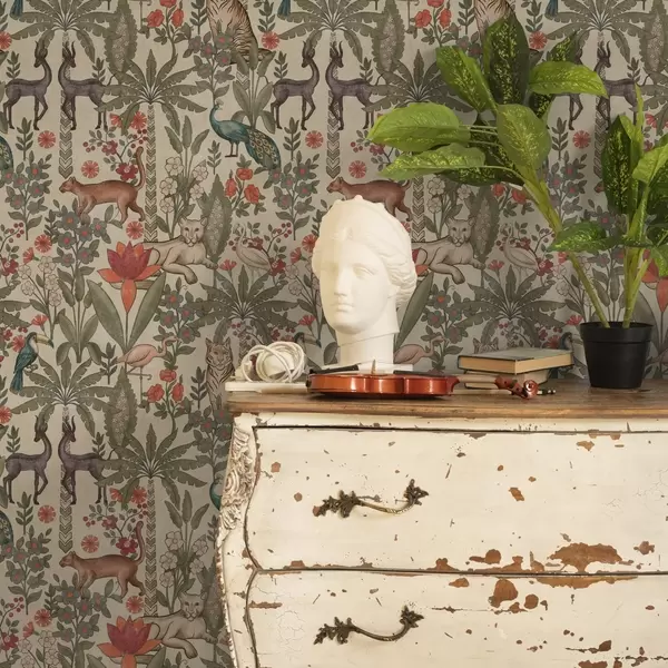 Wallpaper Retro style: Animals and flowers on a vintage background a00431