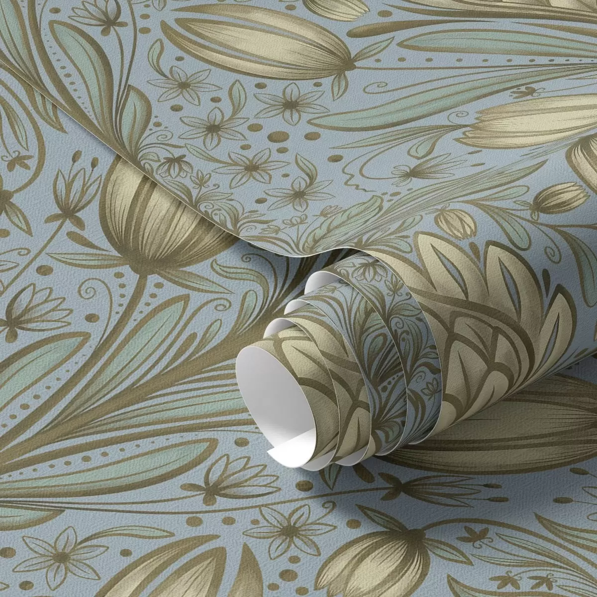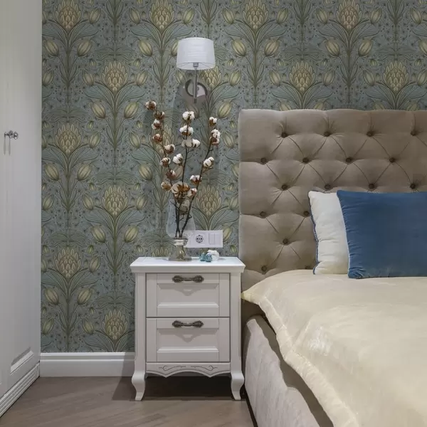Wallpapers Blue pattern with artichokes and tulips No. a00435