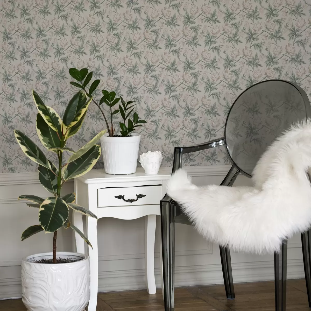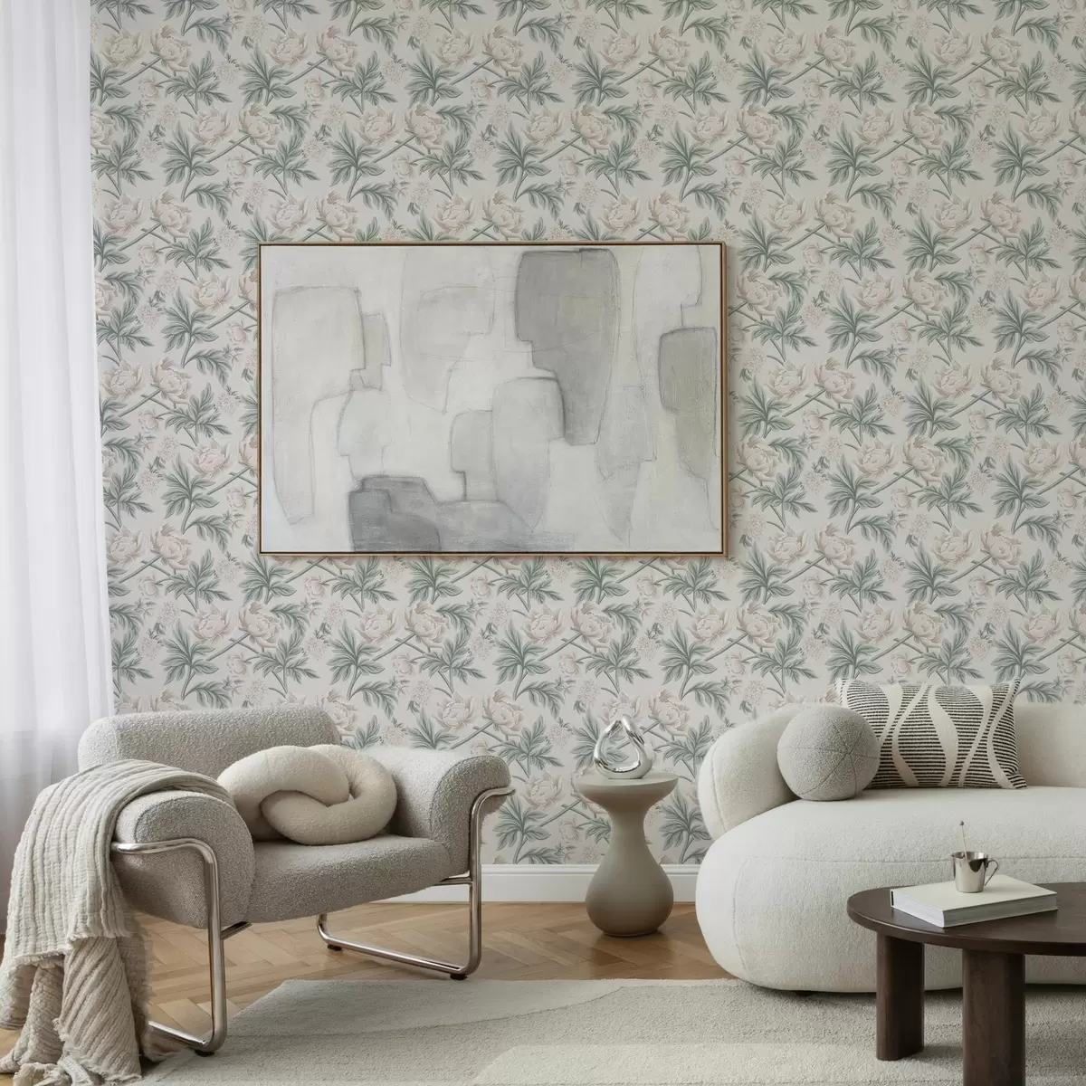 Wallpaper Lush peonies in light beige and green beige and green a00445
