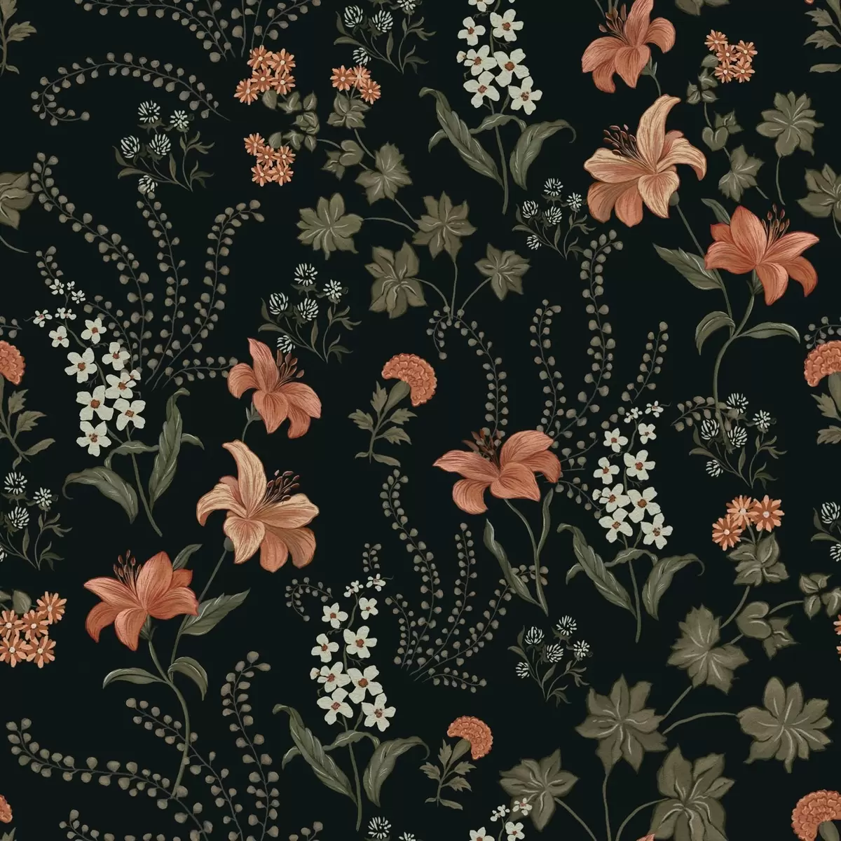 Wallpapers Orange lilies and small flowers on a black background No. a00463