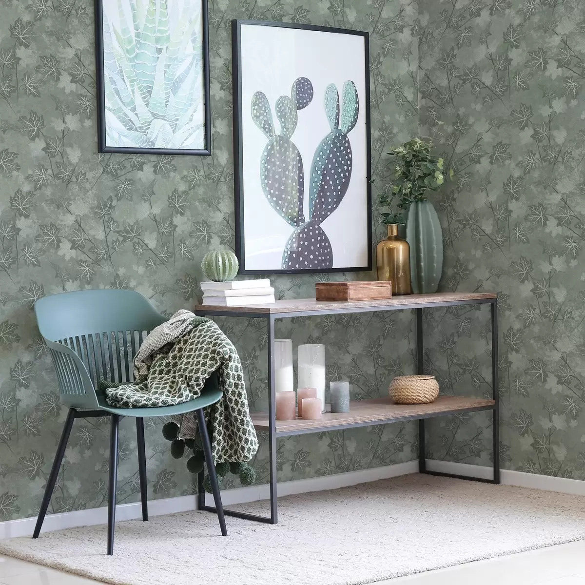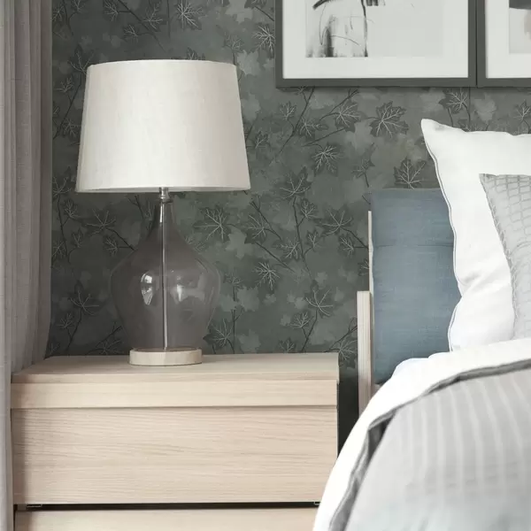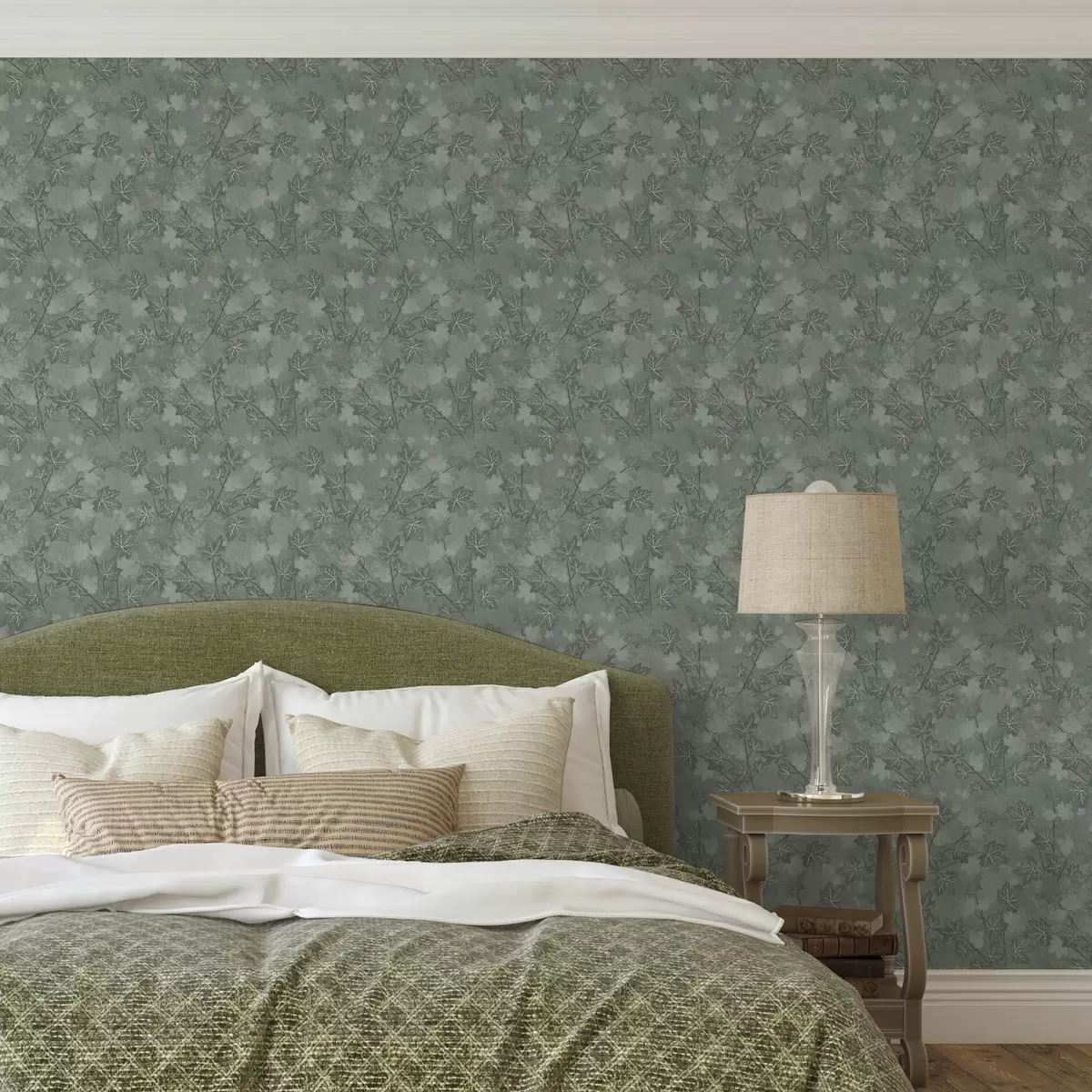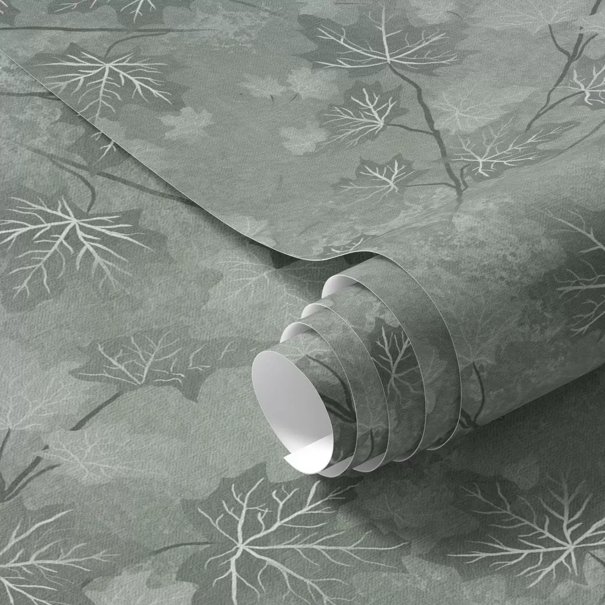 Wallpaper Matte maple leaves in soft green tones a00464