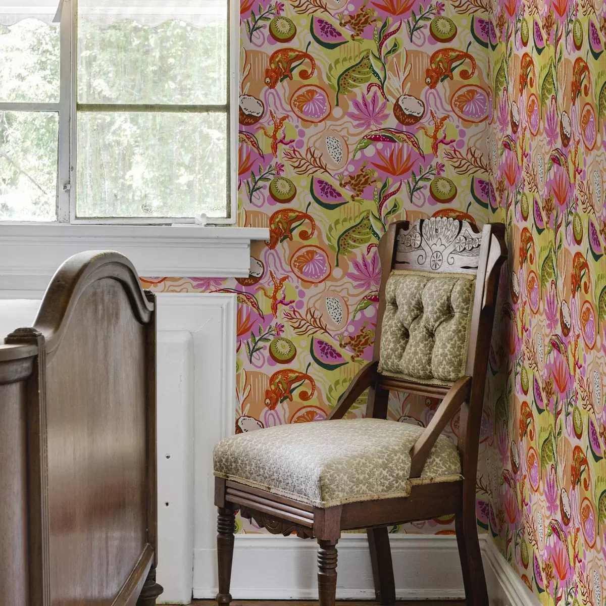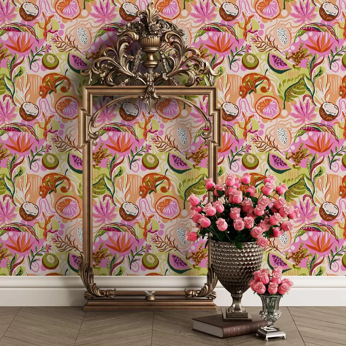 Wallpapers Exotic fruits, leaves and chameleons in a tropical style No. a00469
