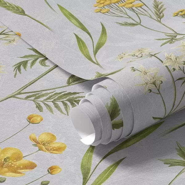 Wallpapers Yellow flowers and greenery on a light gray background No. a00472