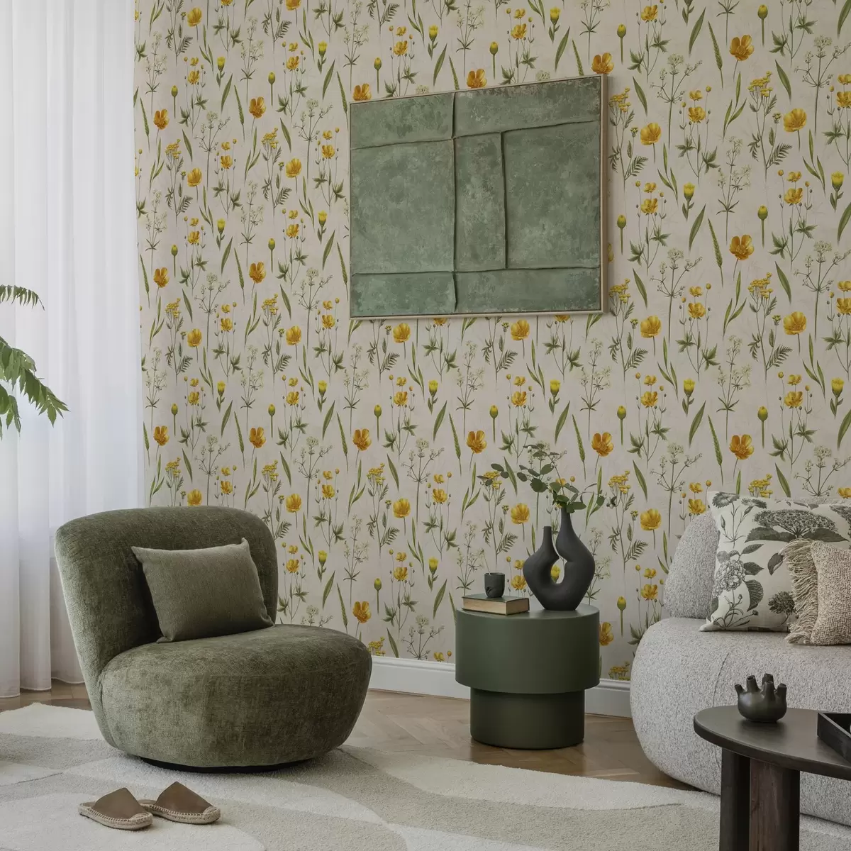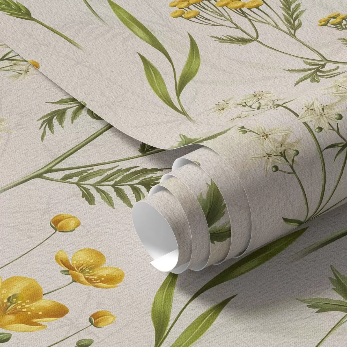 Wallpapers Yellow flowers and greenery on a beige background No. a00472v2