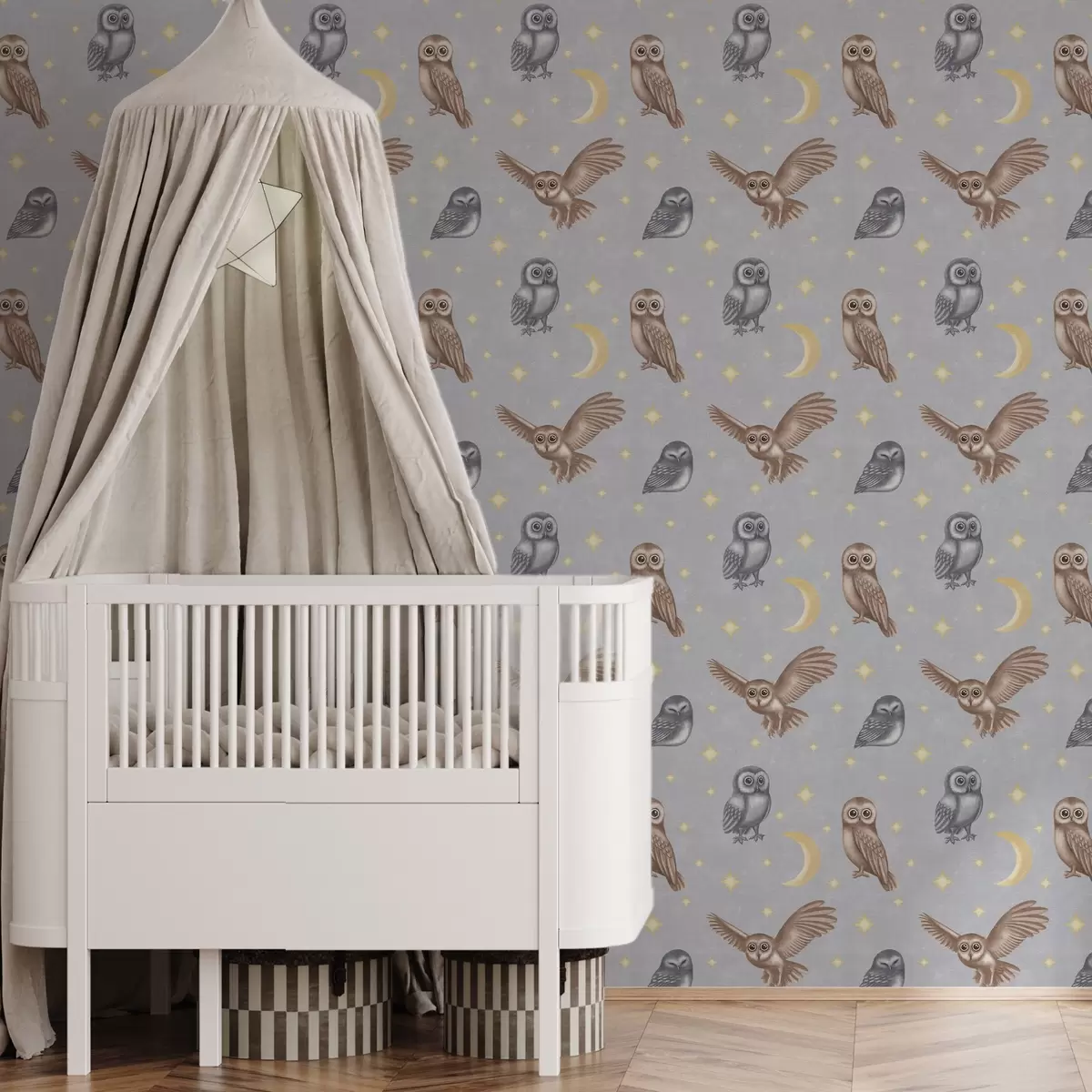 Wallpapers Owls and stars on a gray night sky background No. a00475