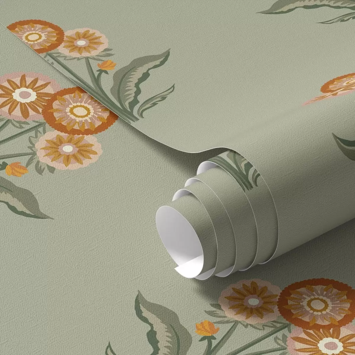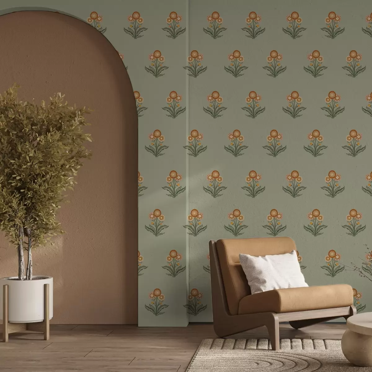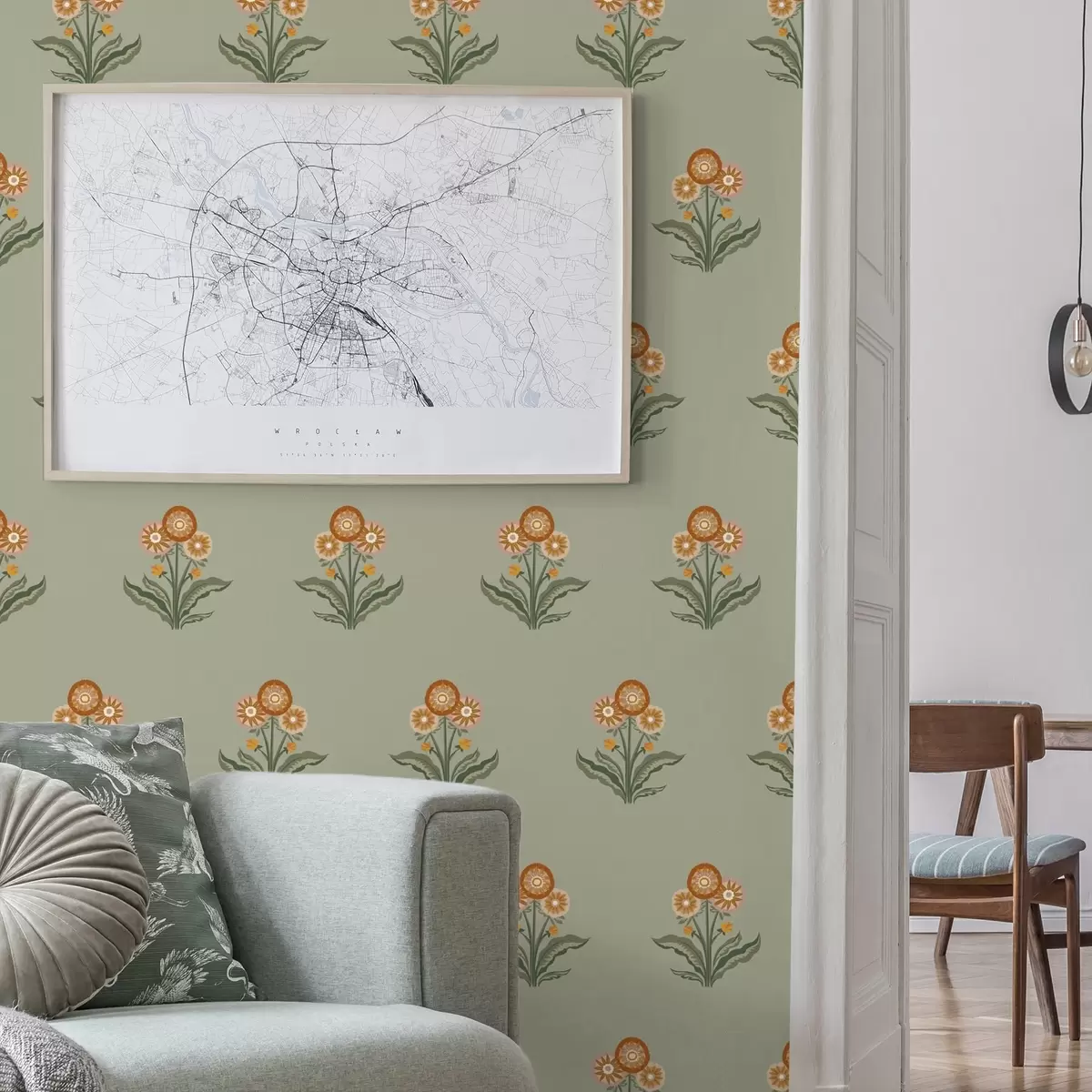 Wallpapers Stylized flowers on an olive background, warm tones No. a00494v2