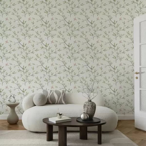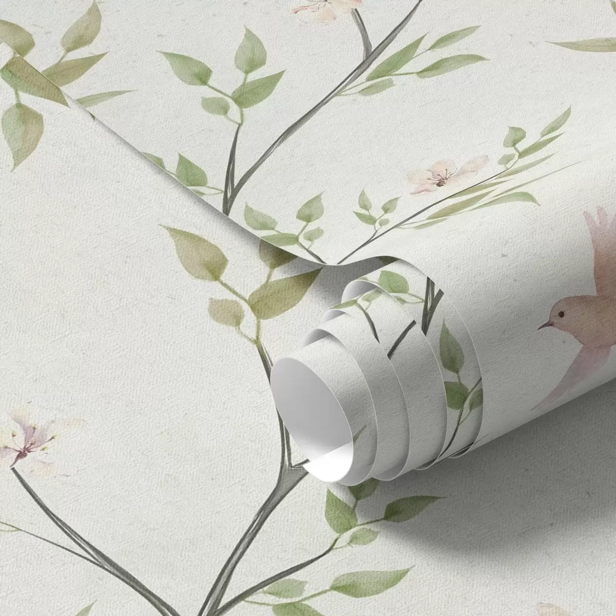 Wallpapers Watercolor branches with leaves and birds on a light ground No. a00496