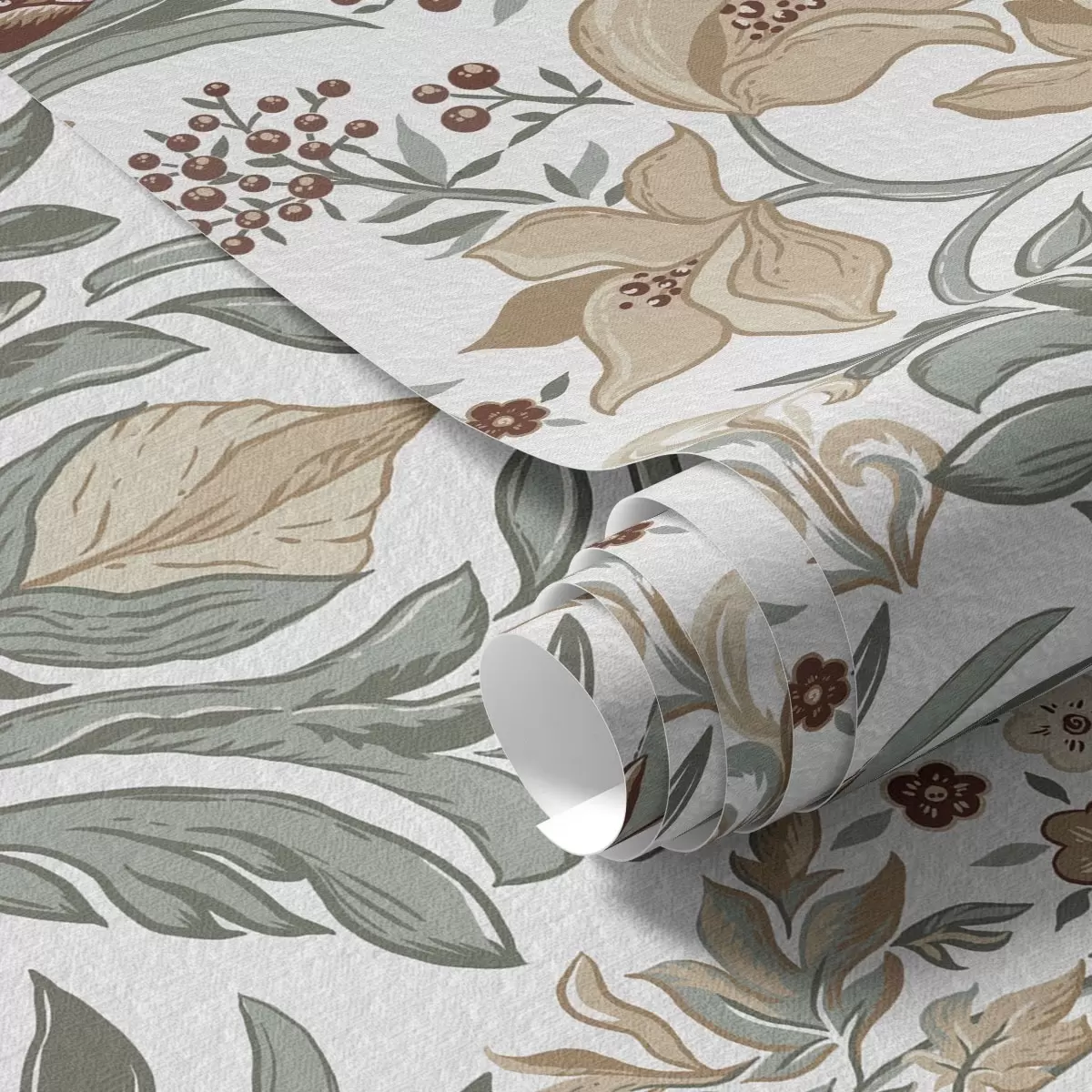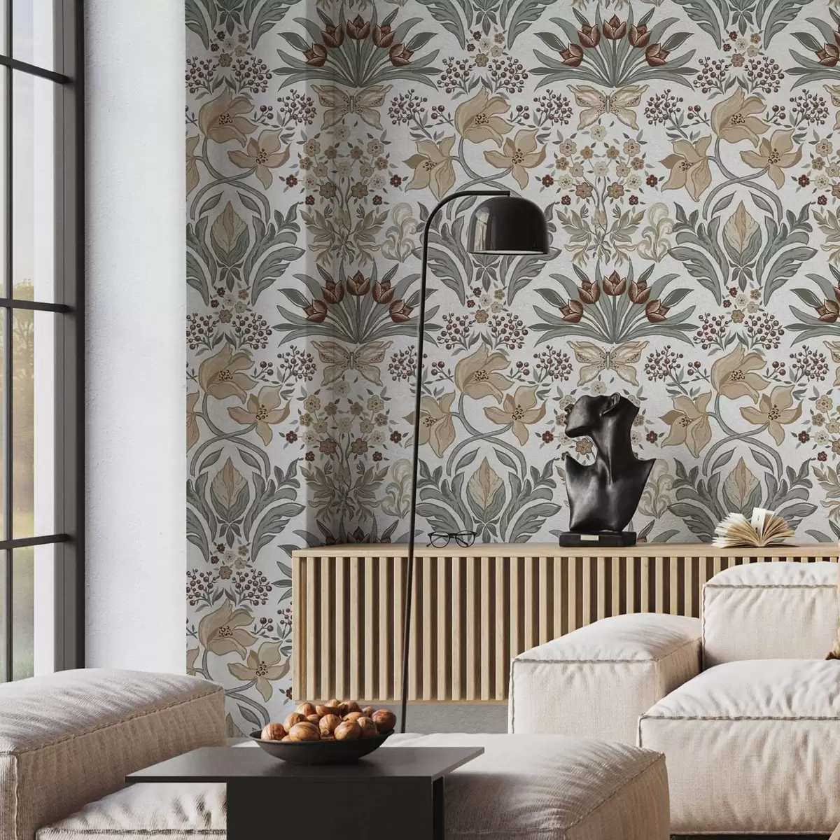 Wallpaper Decorative lilies and a butterfly on a white background a00500v1