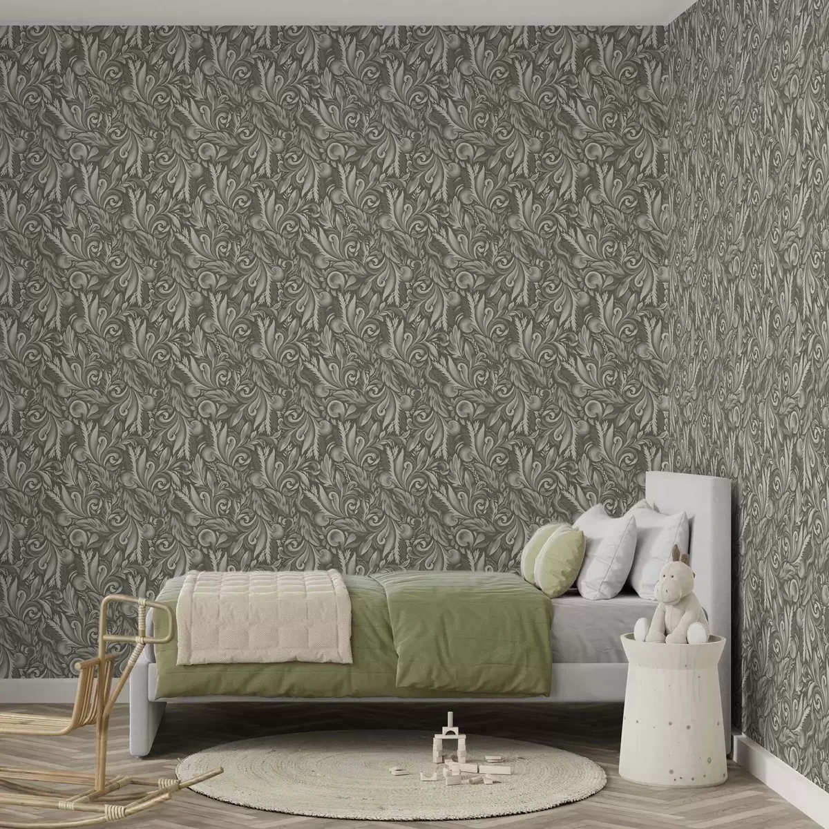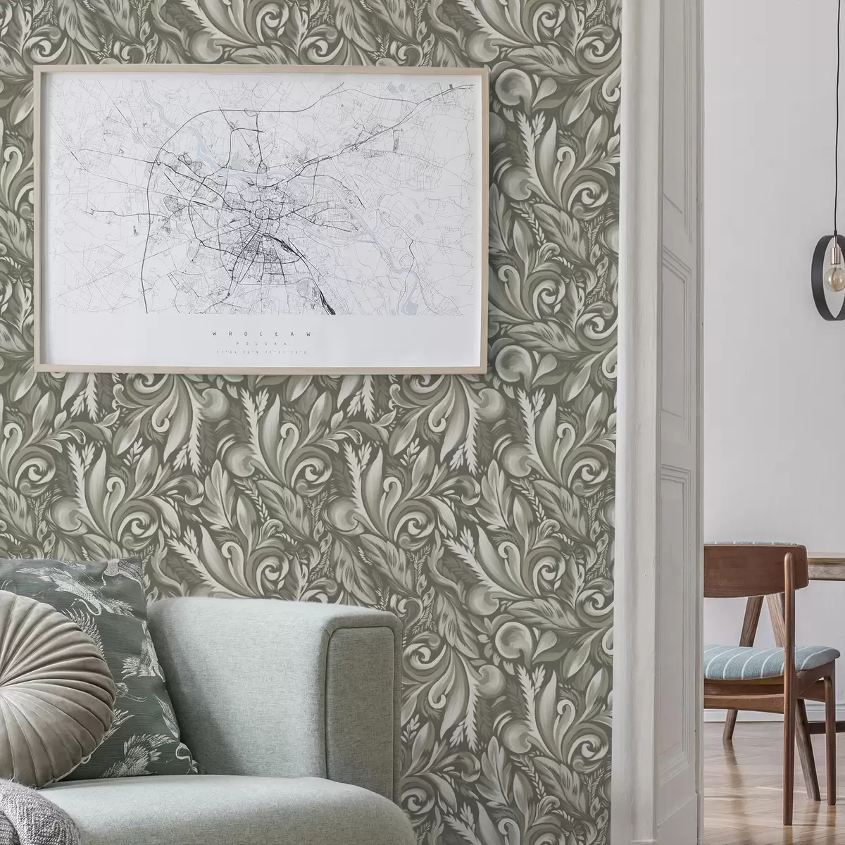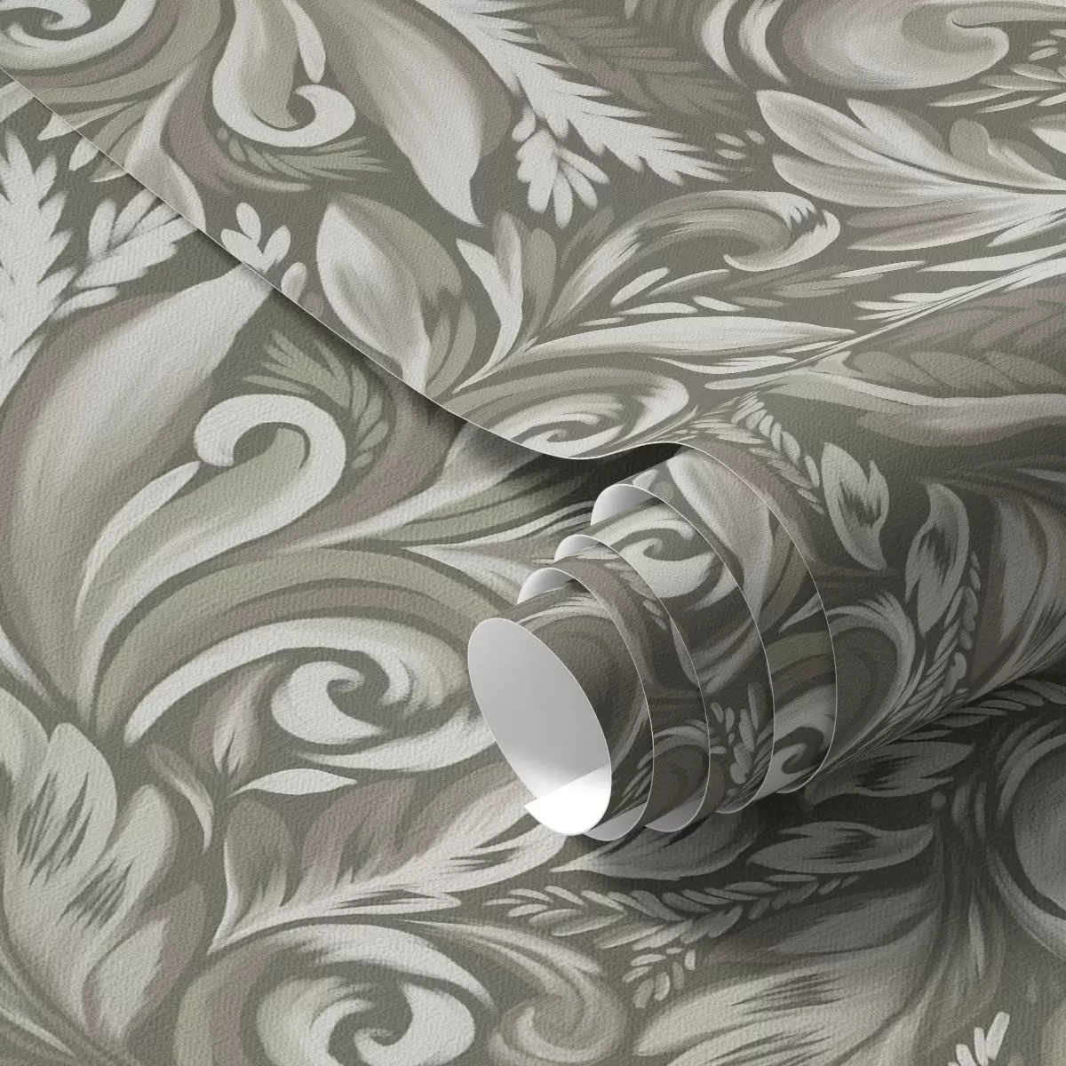 Wallpapers Acanthus scrolls in an olive-beige palette No. a00501