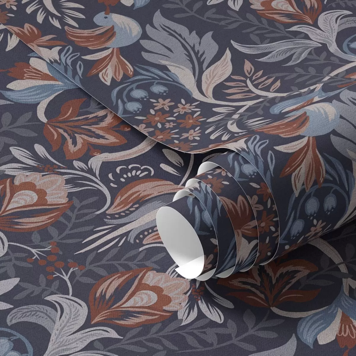 Wallpapers Folk flowers and birds on a dark blue background No. a00502