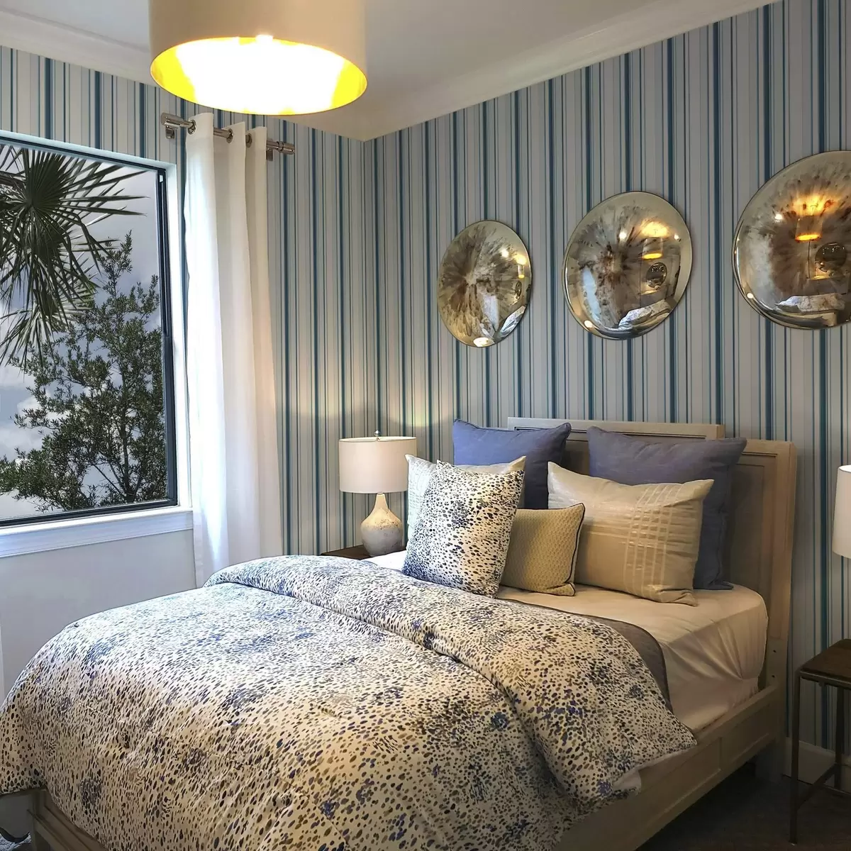 Wallpapers Turquoise and blue stripes of varying widths on a light background No. a00530