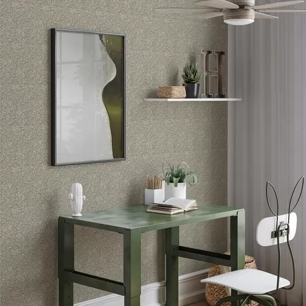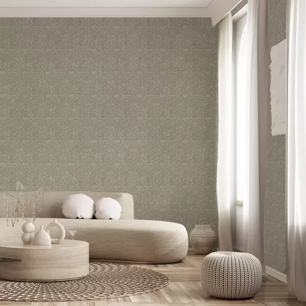 Wallpaper Morris style: beige branches on a gray-green background a00569