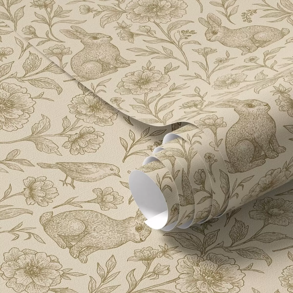 Wallpapers Rabbits and birds in a floral pattern No. a00571