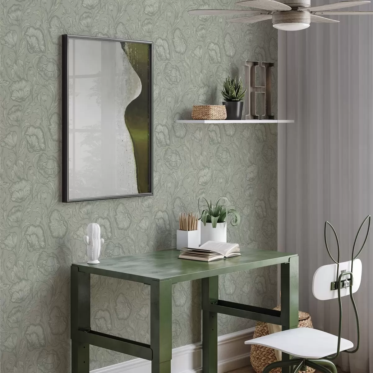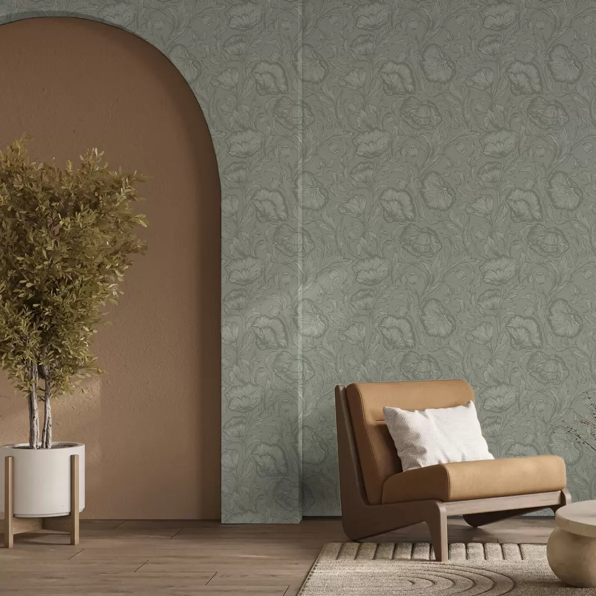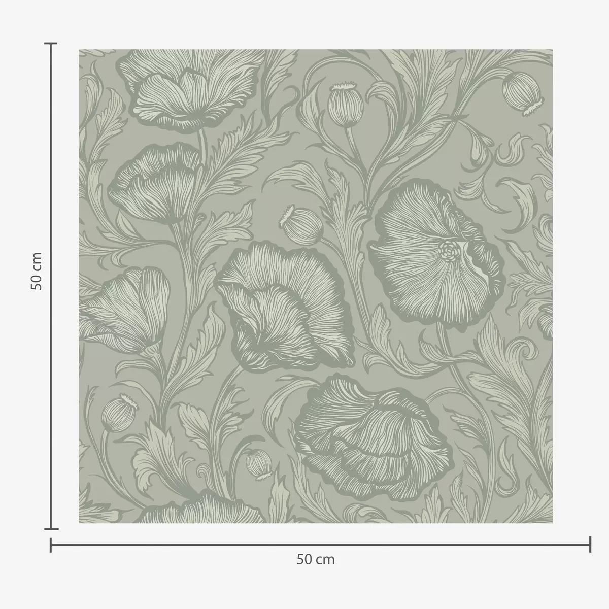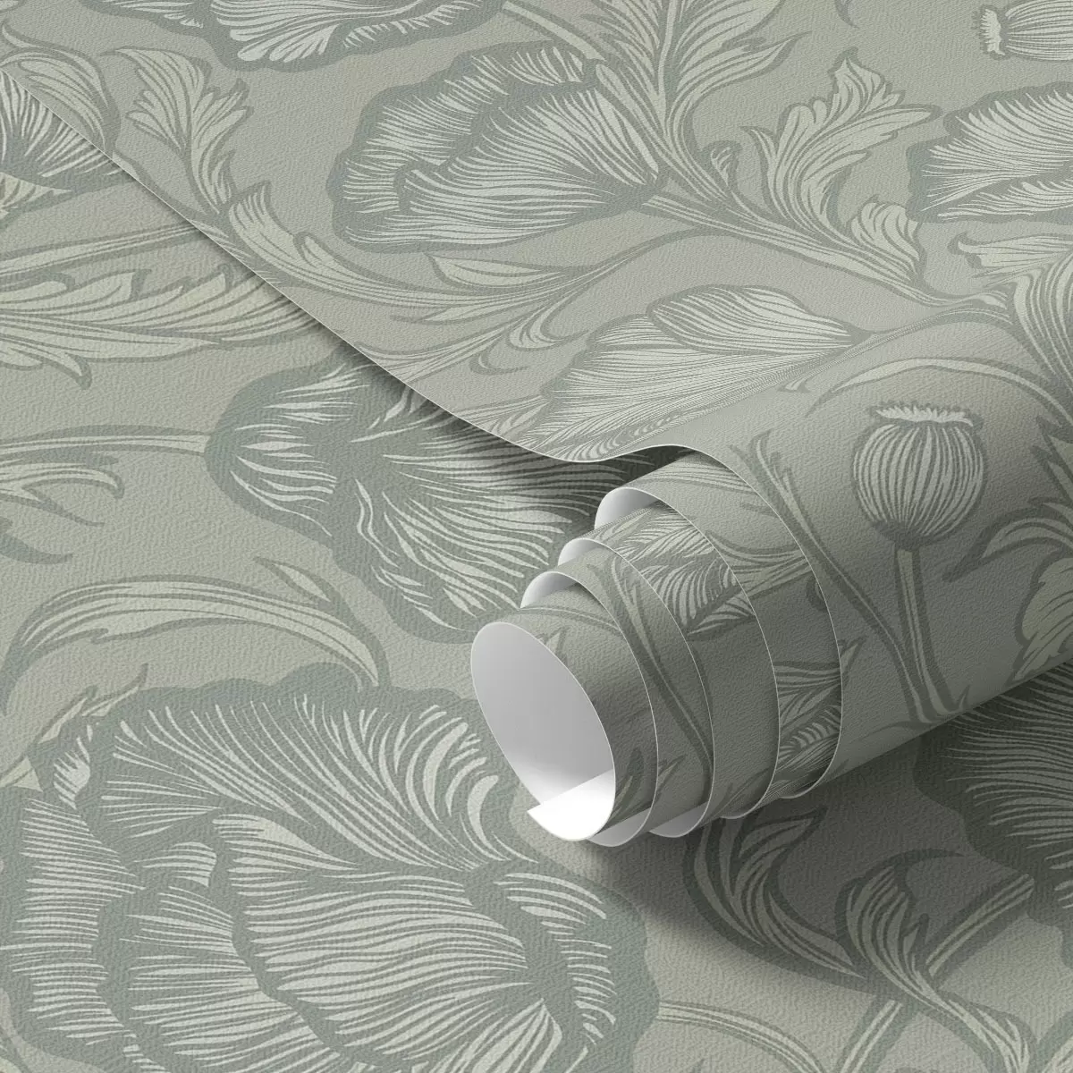 Wallpapers Line-art poppies on a gray-green background No. a00572v1
