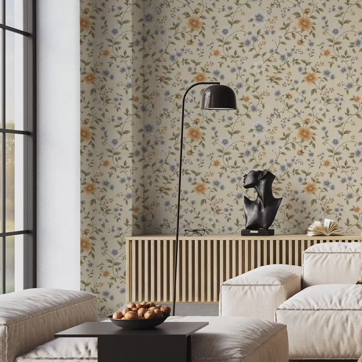 Wallpapers Floral branches with blue and peach flowers No. a00575