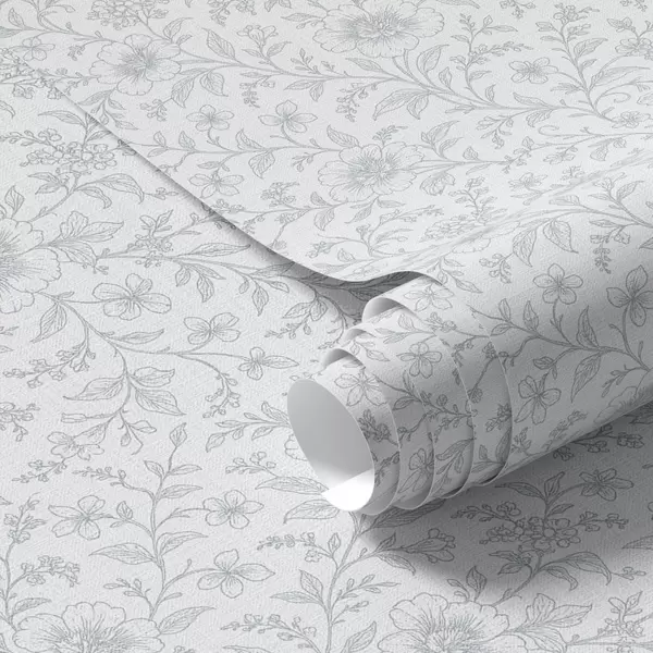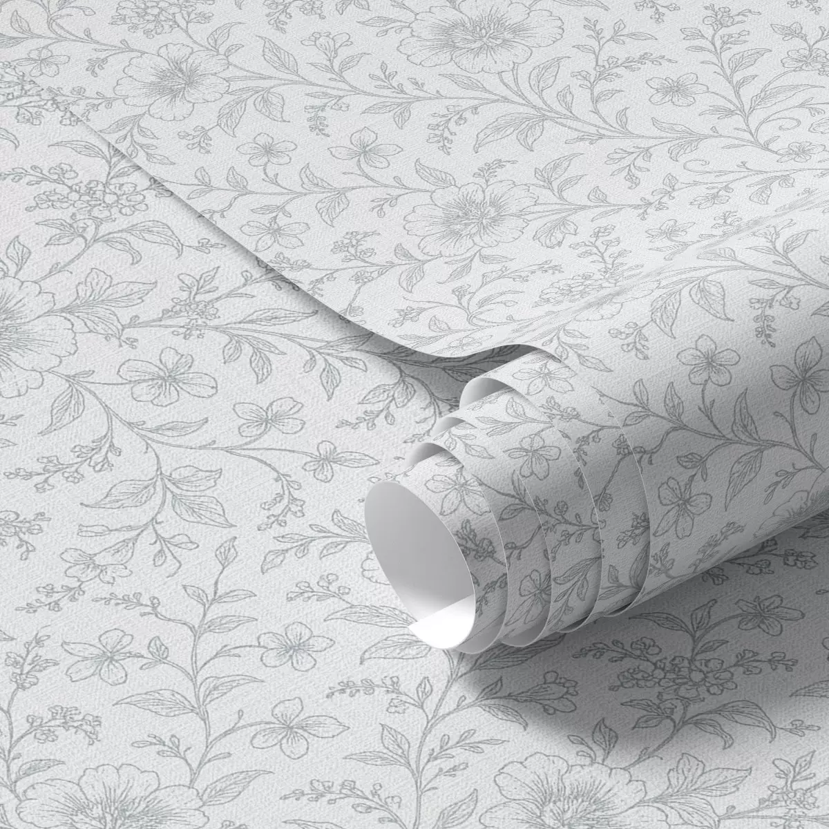 Wallpapers Fine blue line-art flowers on an off-white background No. a00576