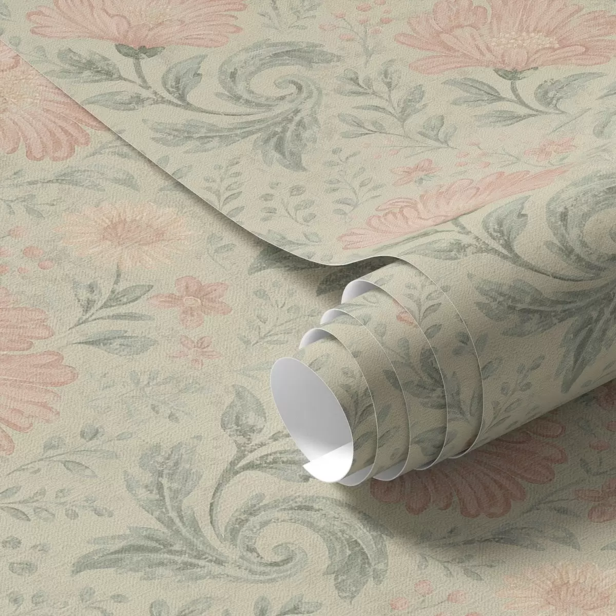 Wallpapers Vintage large peach flowers with sage leaves No. a00580