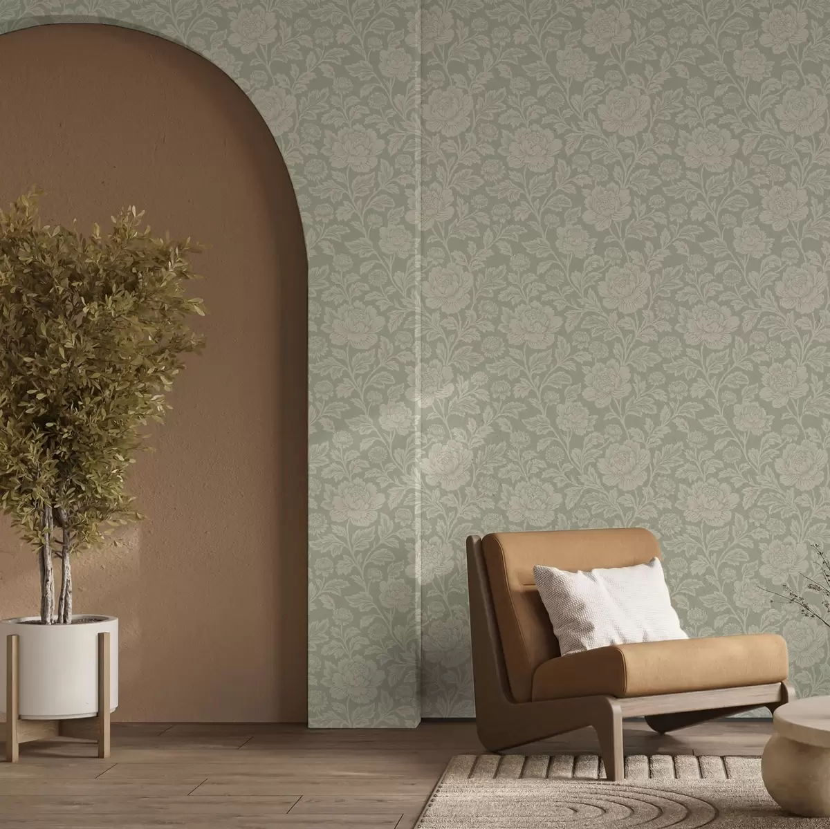 Wallpapers Large line-art peonies on a sage background No. a00582
