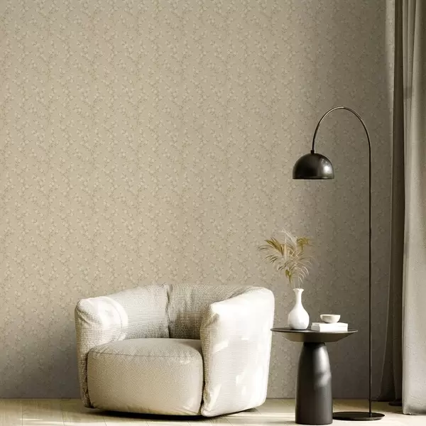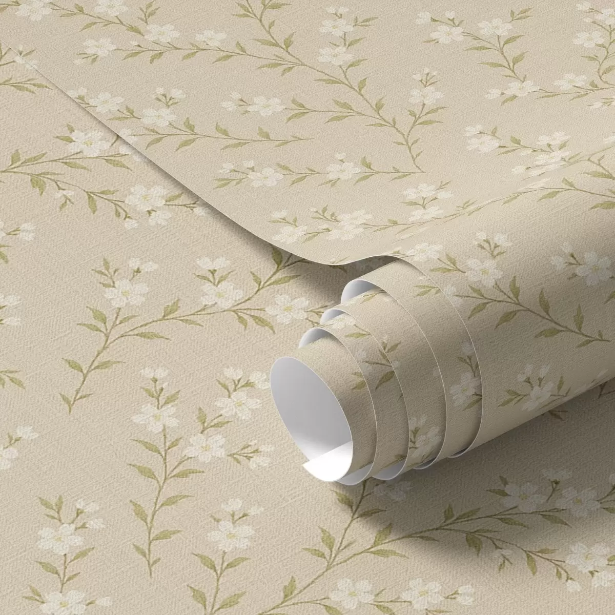 Wallpapers Small white sprigs on a beige linen background No. a00584